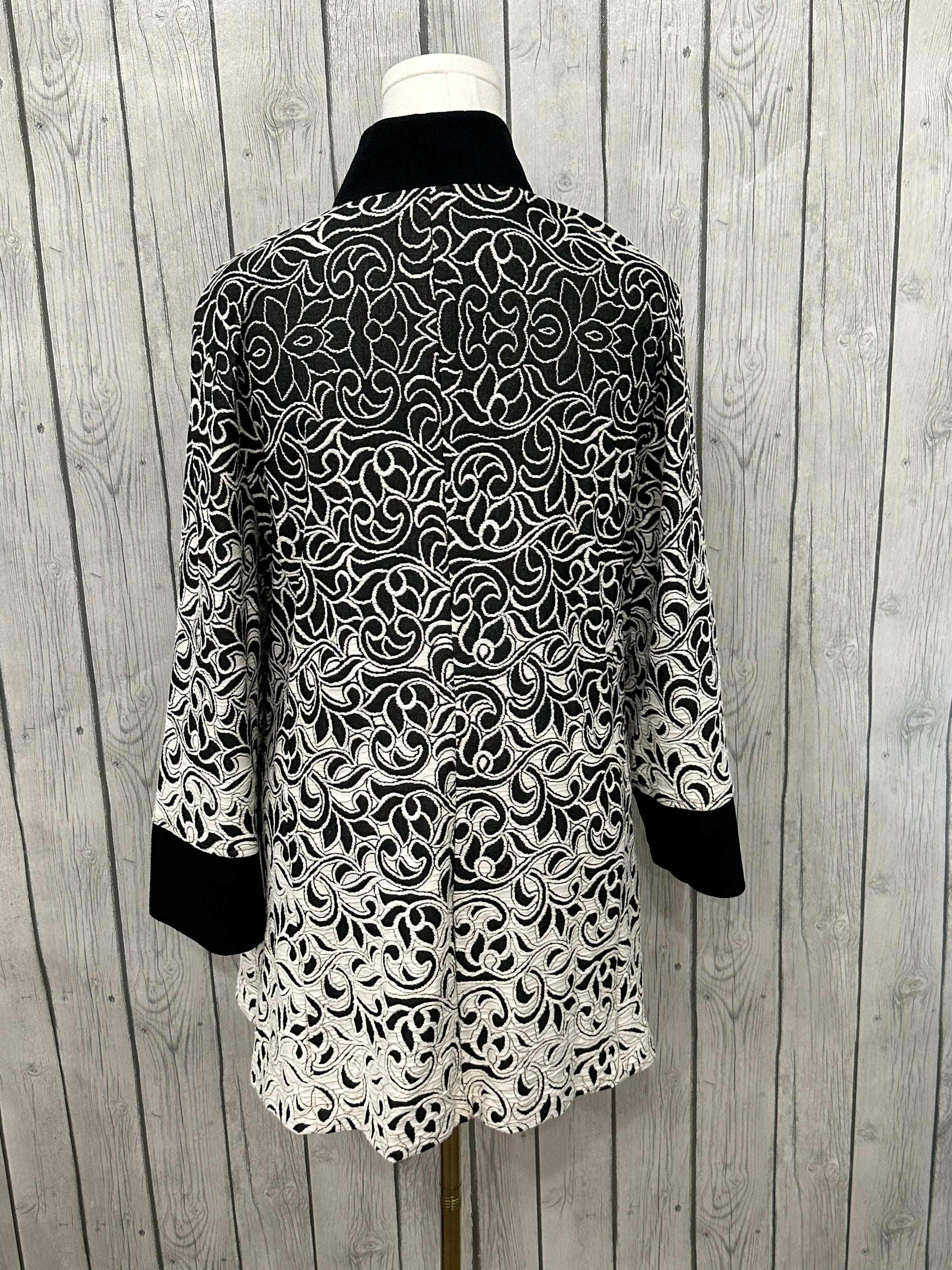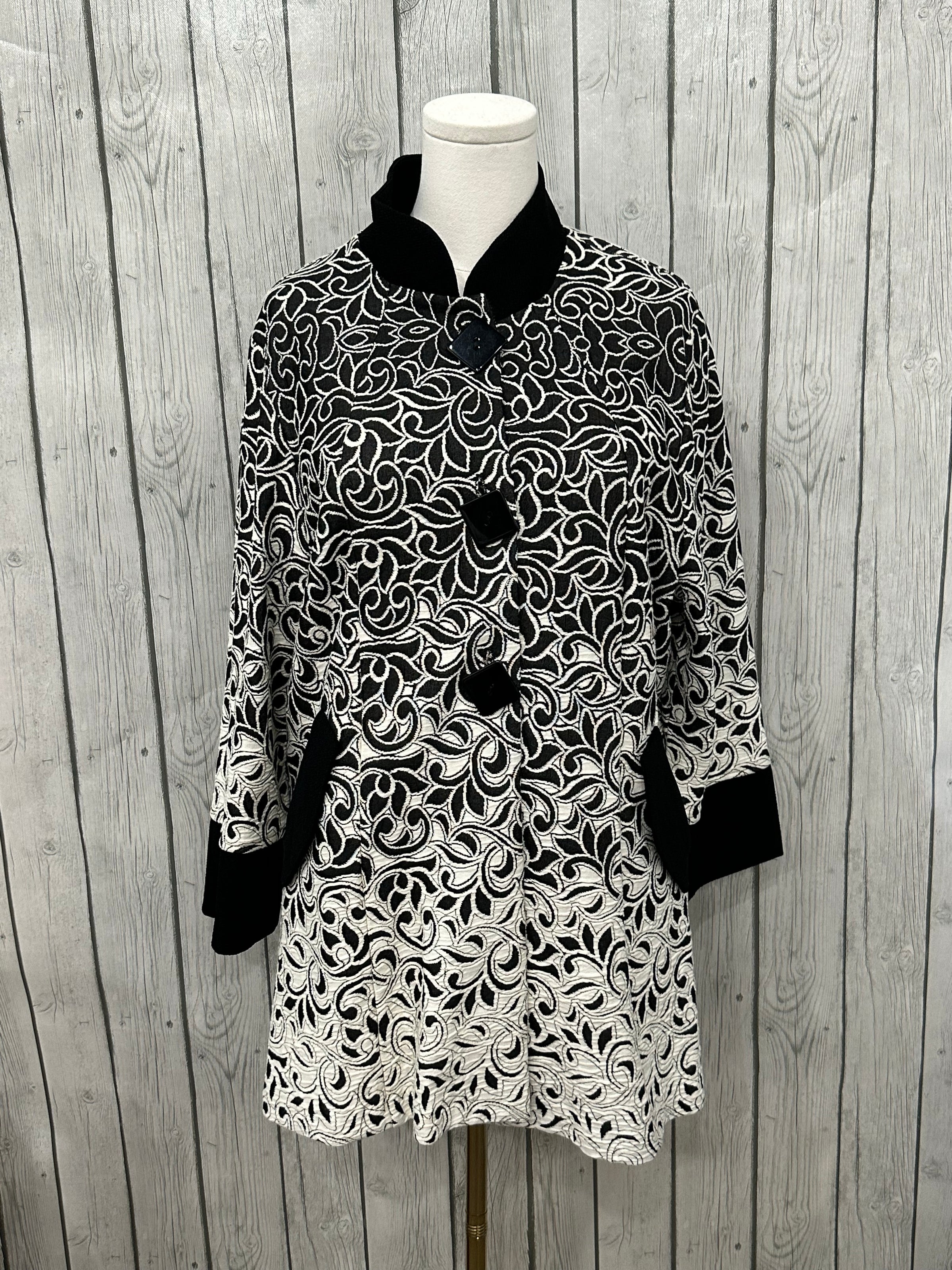 Stay cozy in the colder months with The Angie Jacket. Crafted with soft, warm material, this jacket features large front buttons and a unique black and cream design. Plus, two front pockets provide extra convenience without taking anything away from the beauty of this jacket. Perfect for both style and comfort.