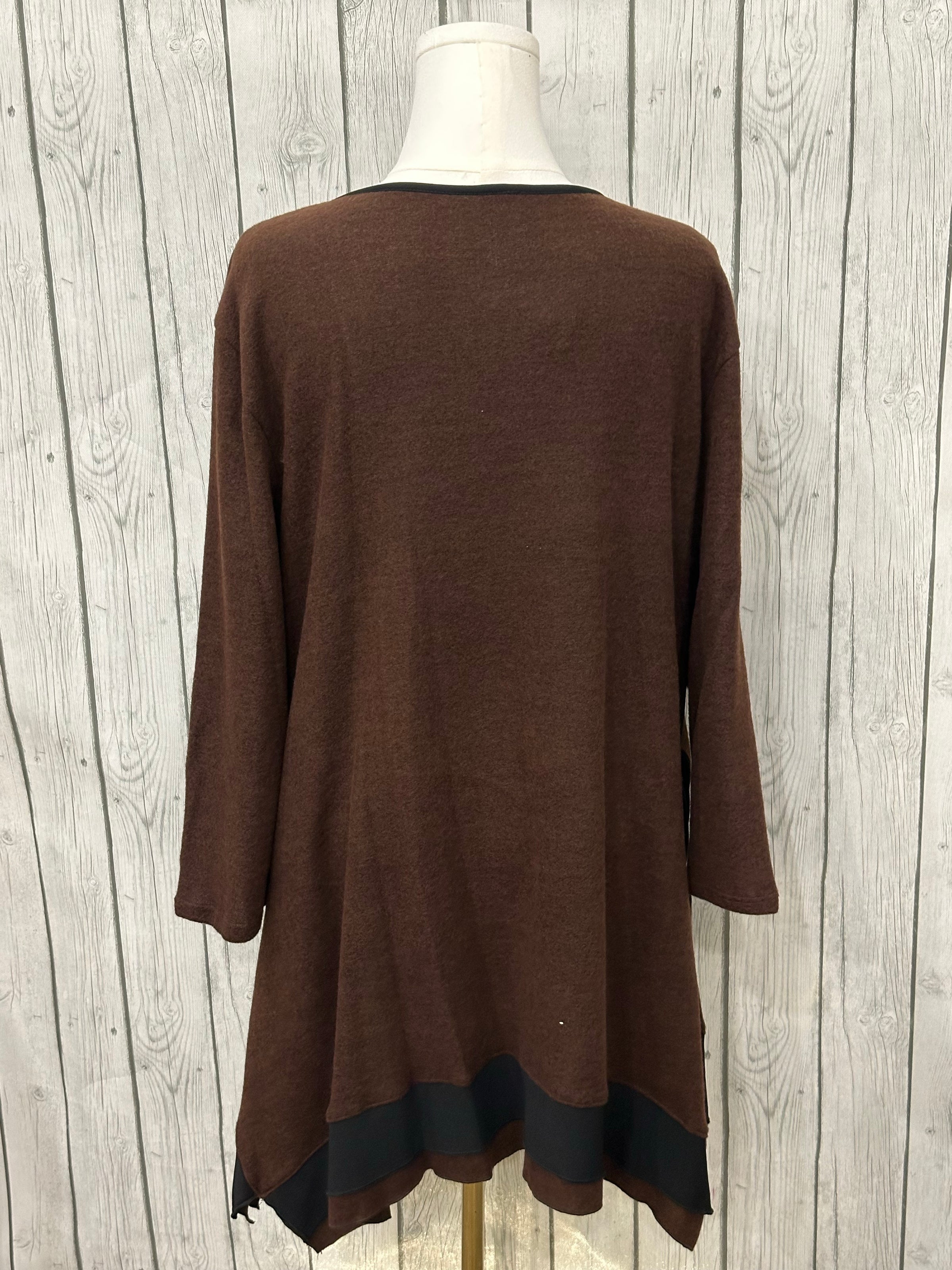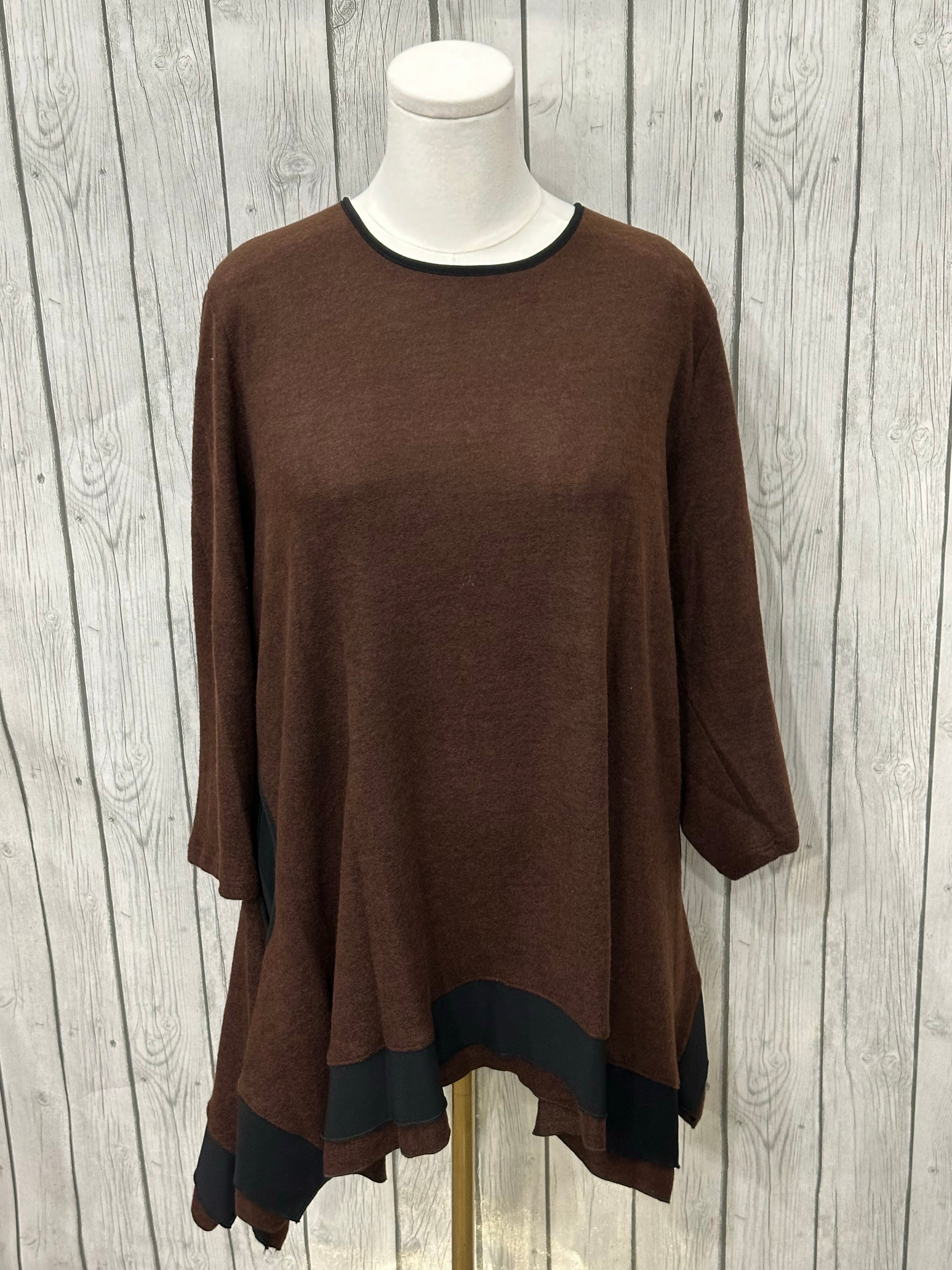 The Bridget Top boasts cozy sweater material, ready to keep you warm in style. The fashionable pockets on both sides add convenience and a touch of chic, while the cute ruffle on the bottom elevates the top with a dressy detail. Perfect for a comfortable and stylish look.