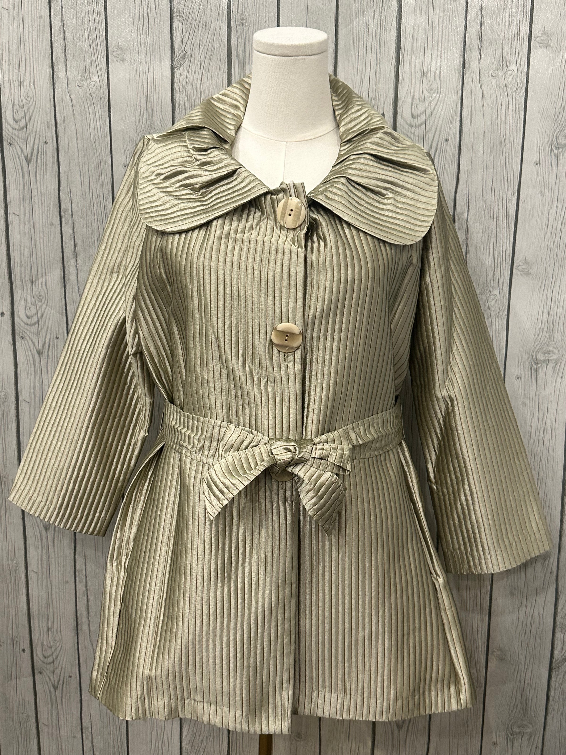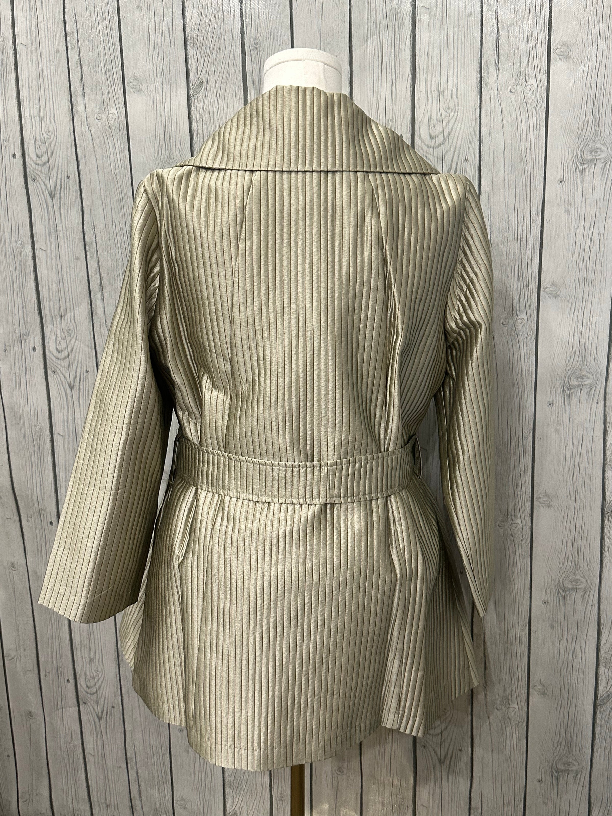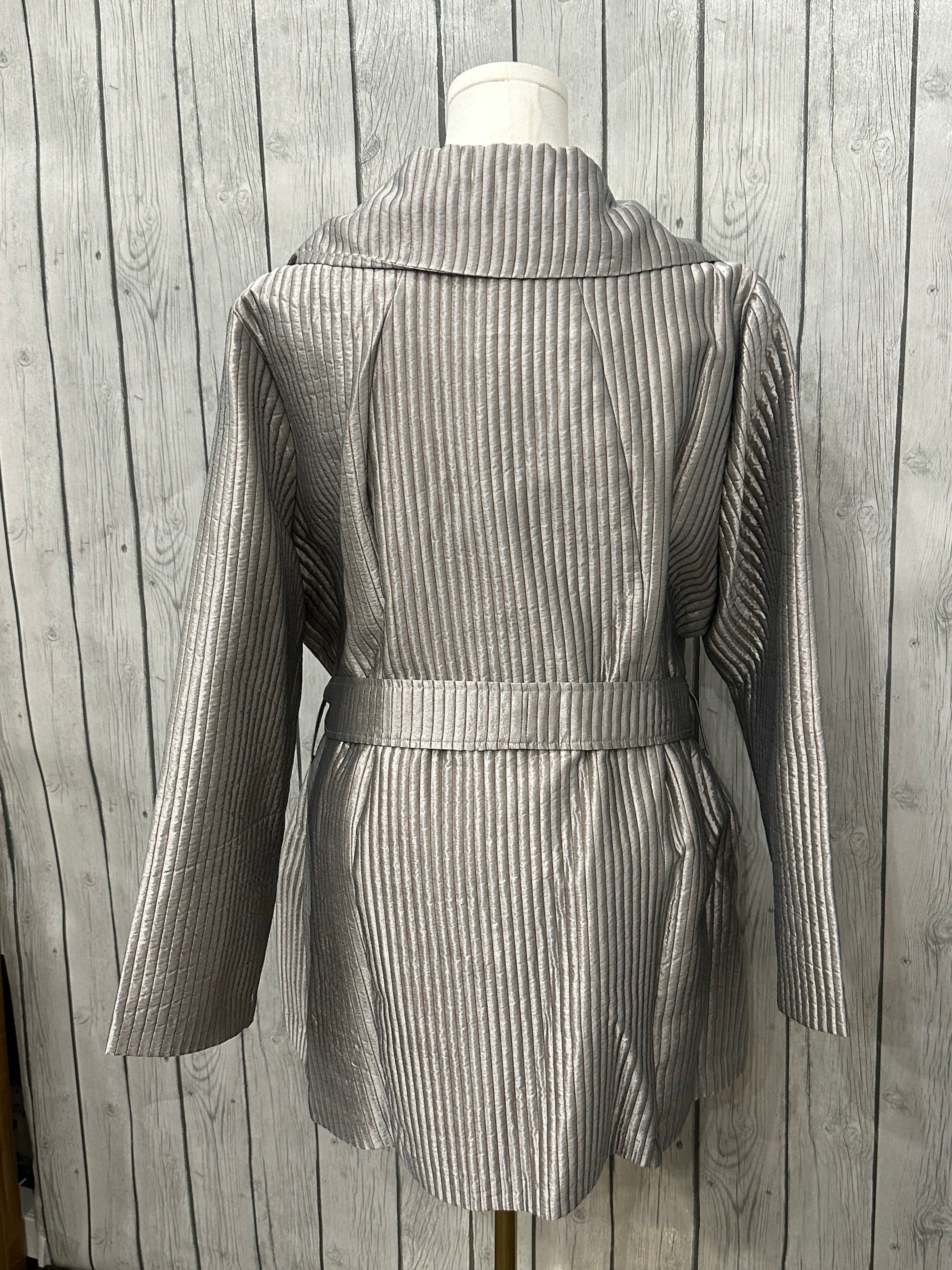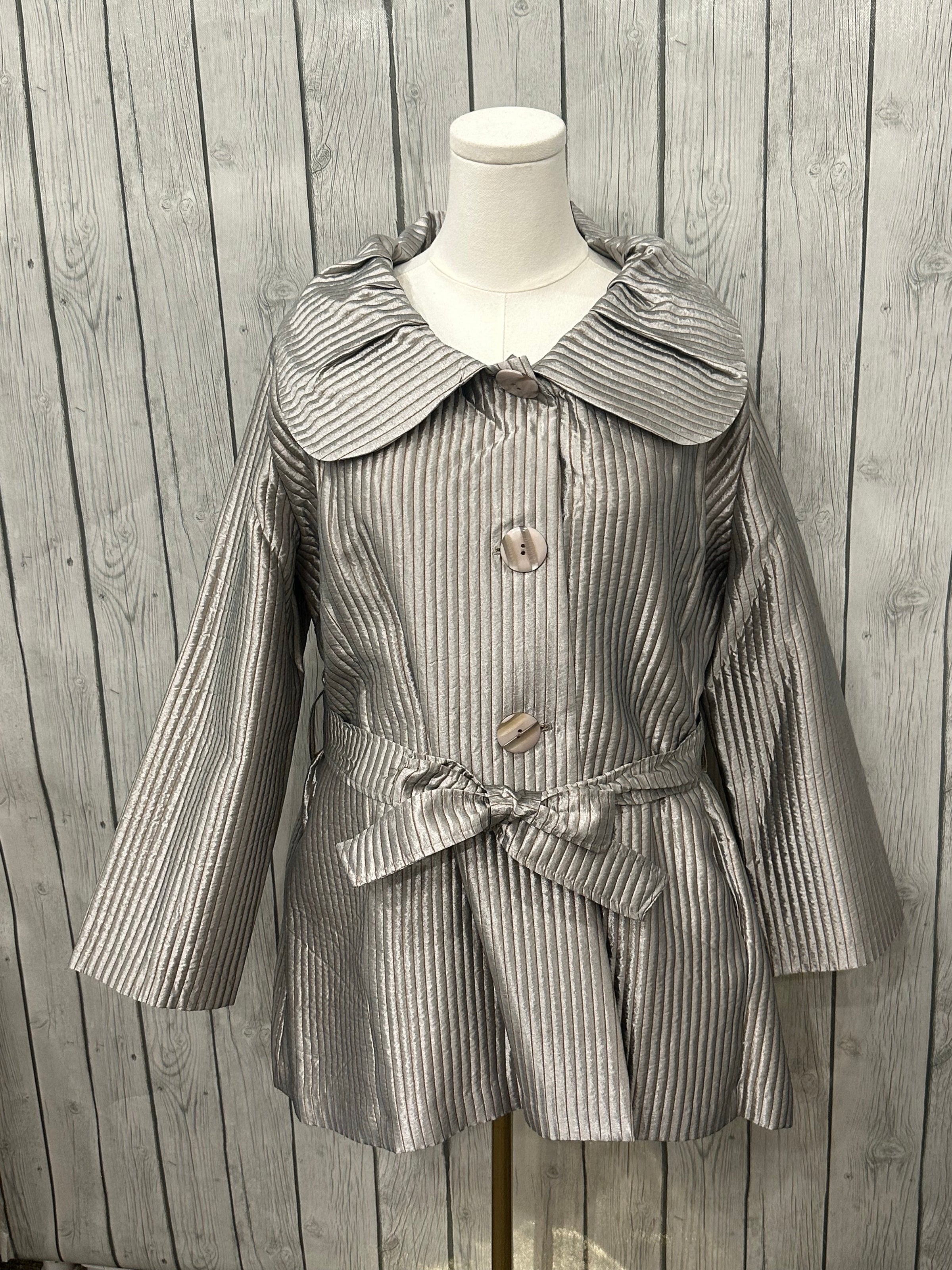 Made out of gorgeous metallic material, the Charlotte Jacket exudes luxury and style. The large collar adds a touch of elegance while the front buttons and belt give off a flattering feminine appeal. Perfect for those dressy occasions, this jacket will make you shine with confidence in any room.