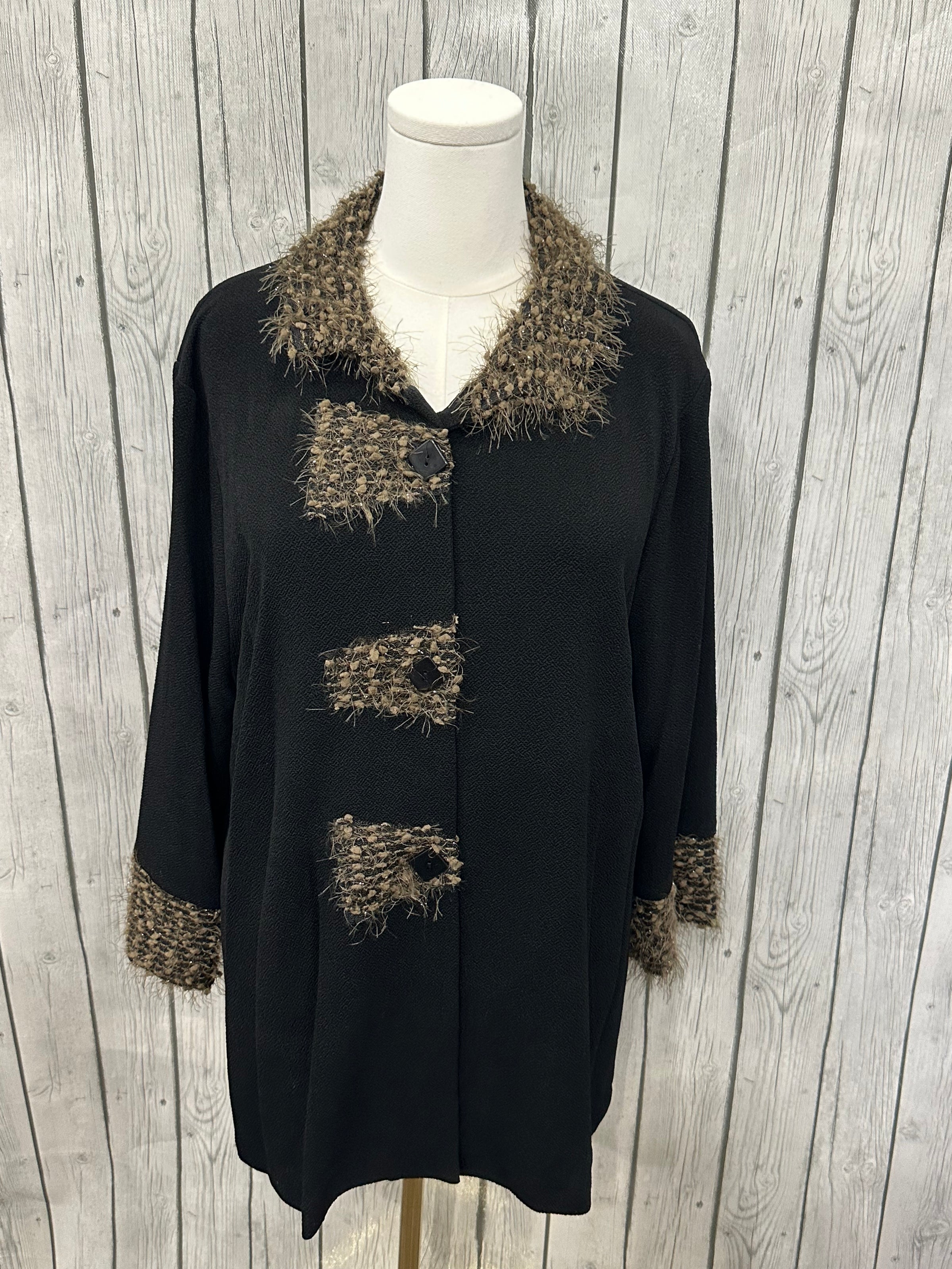 Introducing the Libby jacket from Come N See. The perfect addition to your winter wardrobe. This versatile piece serves as both a lightweight sweater and jacket, providing warmth and comfort. The soft fuzzy collar, sleeve cuffs, and button patches add a touch of luxury without any scratchy discomfort. Stay stylish and cozy with the Libby top.