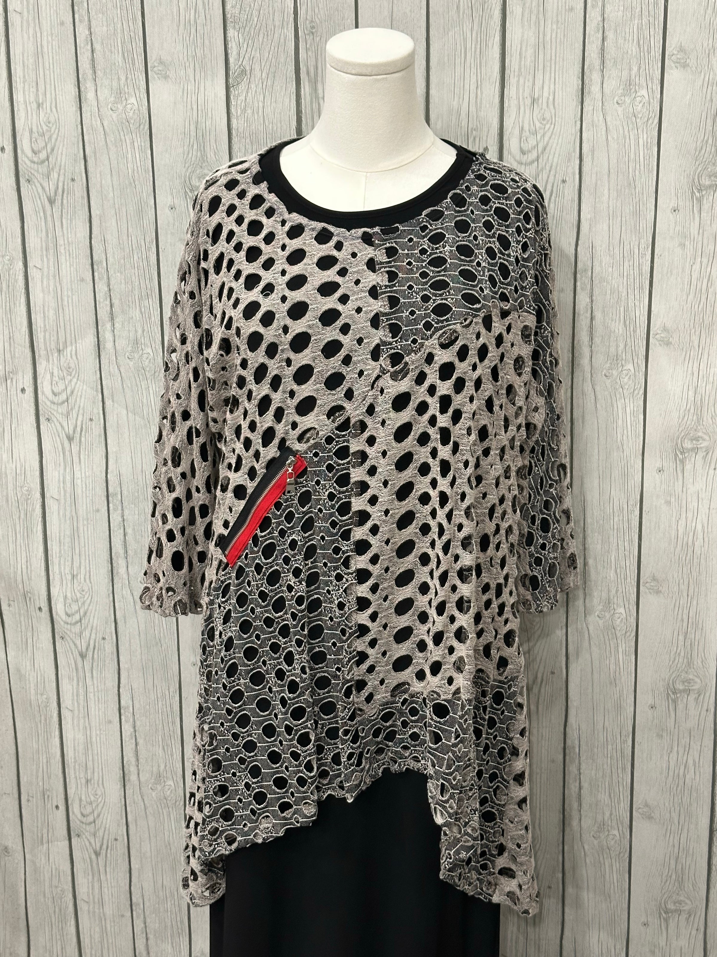 The Vickie Top is beautifully crafted, pull-over style high-low lace overlay. Sporting a fun though faux zipper pocket, Vickie provides functionality and style for any occasion.