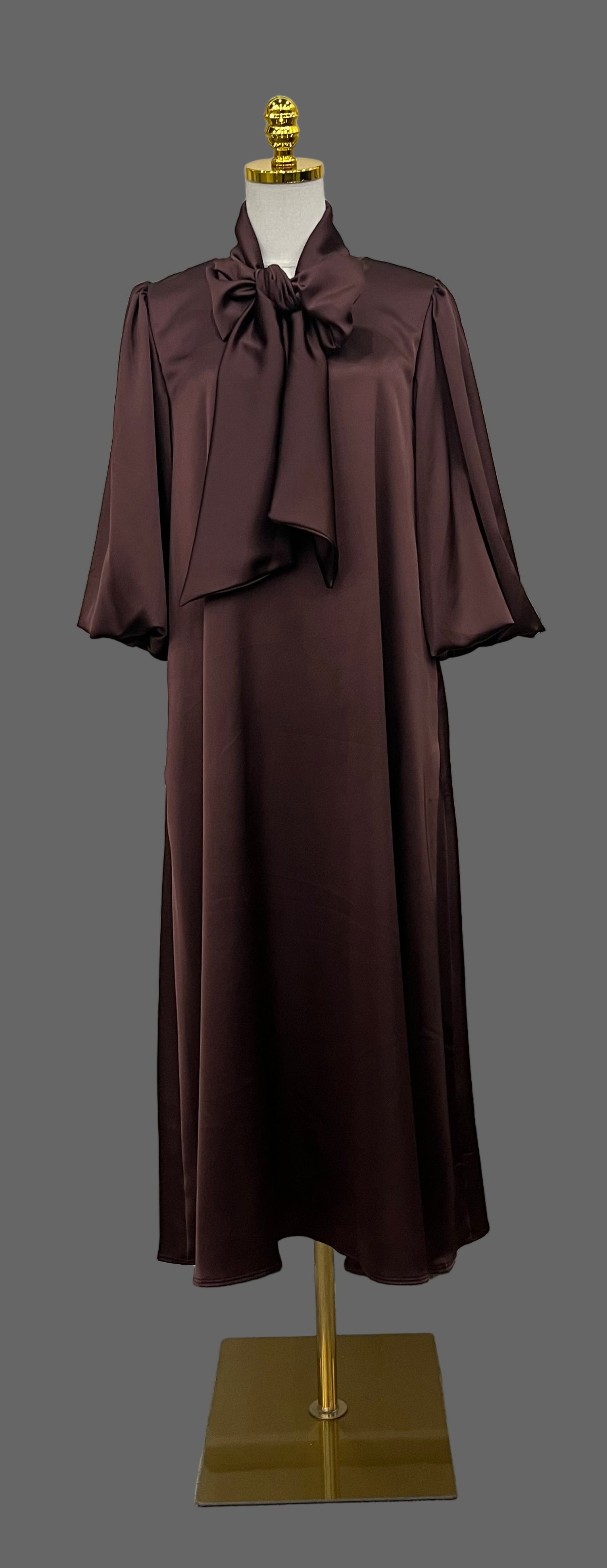 Satin Bow Midi Dress(Red Brown)