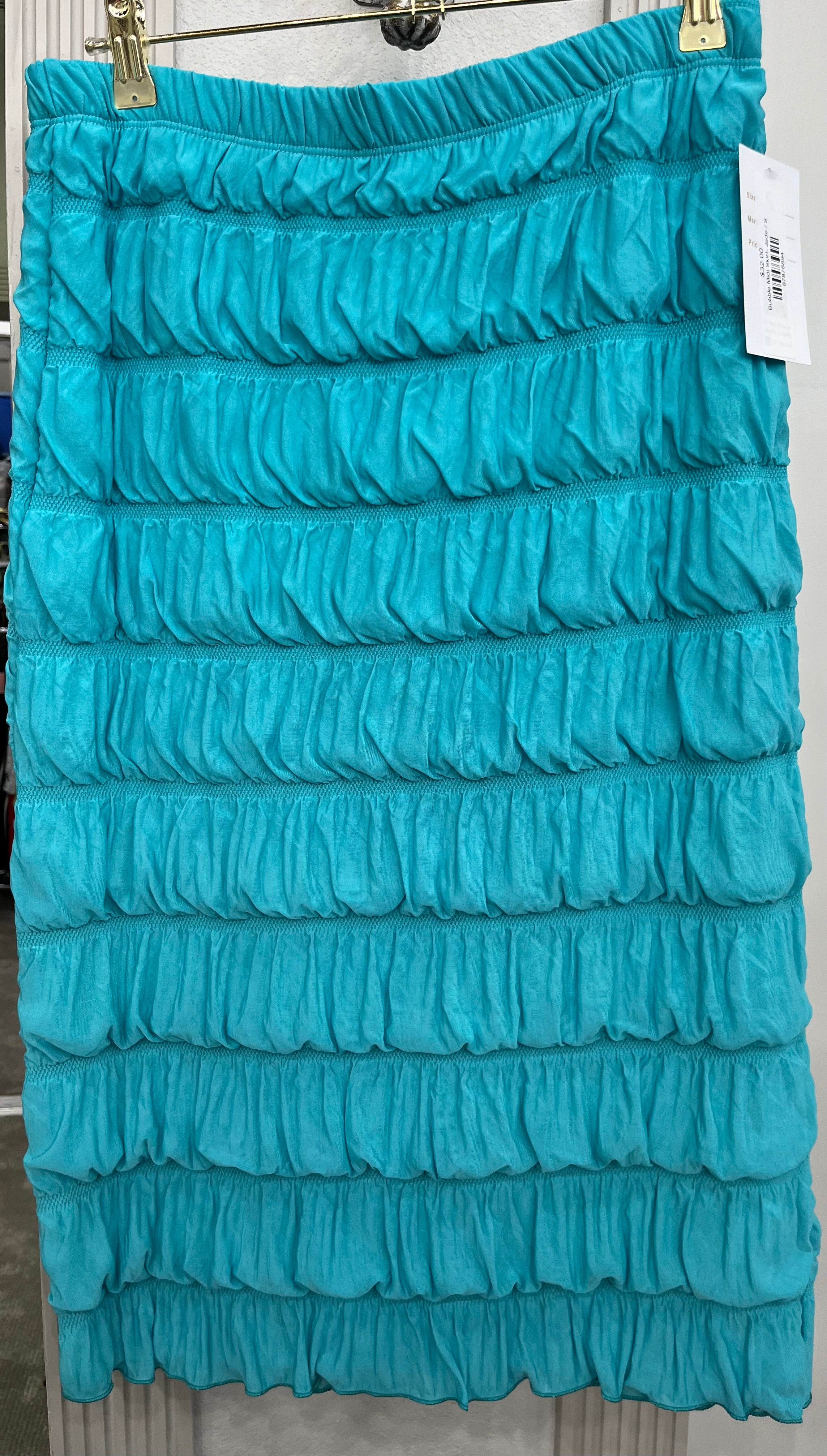 The Bubble Midi Skirt in Jade features an elastic waist for enhanced comfort and ease of wear. Its lined design ensures durability and reduces transparency, while the playful silhouette adds a stylish dimension to various outfits. Ideal for casual or semi-formal occasions, this skirt combines functionality with aesthetic appeal.